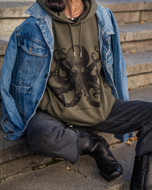BHS BLACK OCTOPUS UNISEX KHAKI HOODIE